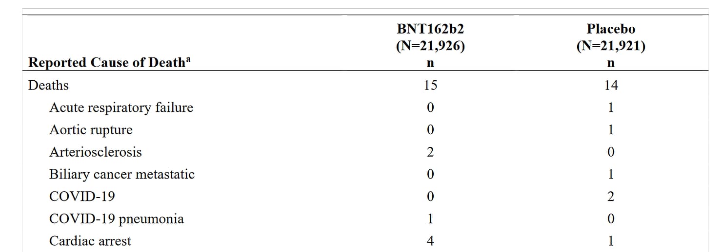 9. Given all of the above, a serious person at least had to keep an eye out for published safety and efficacy data as the pandemic proceeded. Pfizer’s Six-month Safety and Efficacy Study was notable. The very large number of its authors was remarkable and their summary claim was that the tested virus was effective and safe. The data in the paper showed more deaths per head in the “vaccinated” group than “unvaccinated” group.